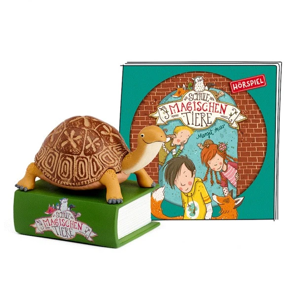 Dieser Tonie enthält die Hörspielfassung des Bestsellers von Margit Auer. Er kommt in Form einer Schildkröte, die auf einem Buch steht.