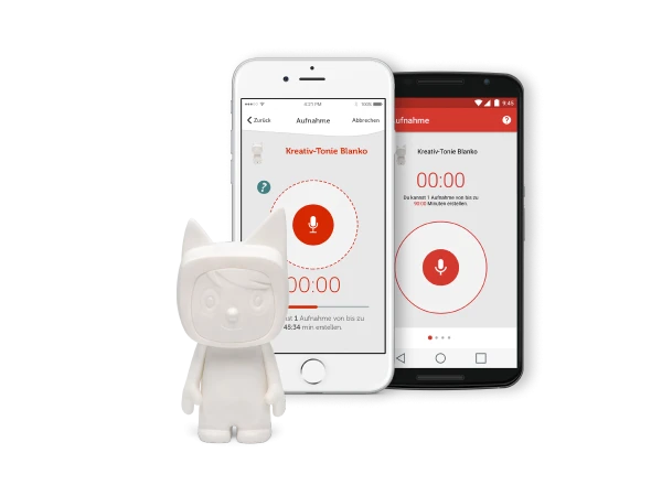 Mit der dazugehörigen, kostenlosen Smartphone-App können eigene Sprachaufnahmen aufgezeichnet und dem Kreativ-Tonie zugewiesen werden.Â